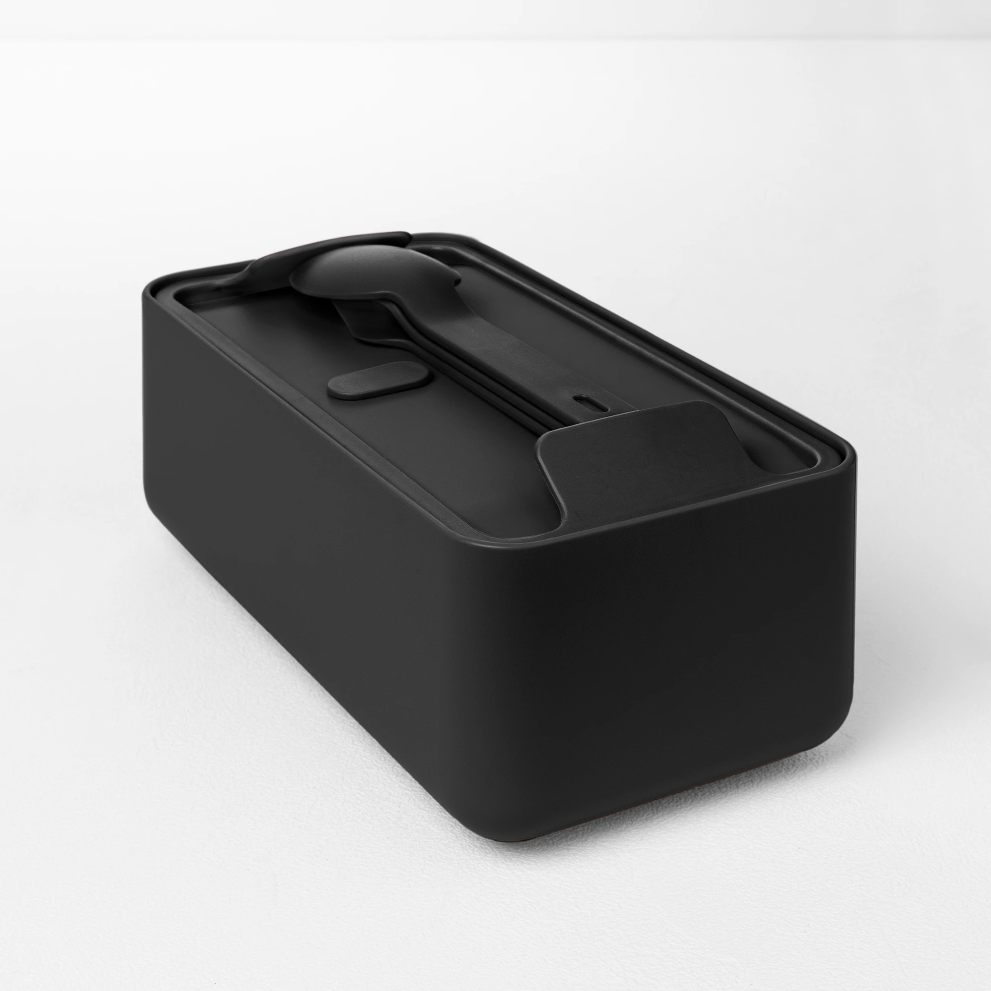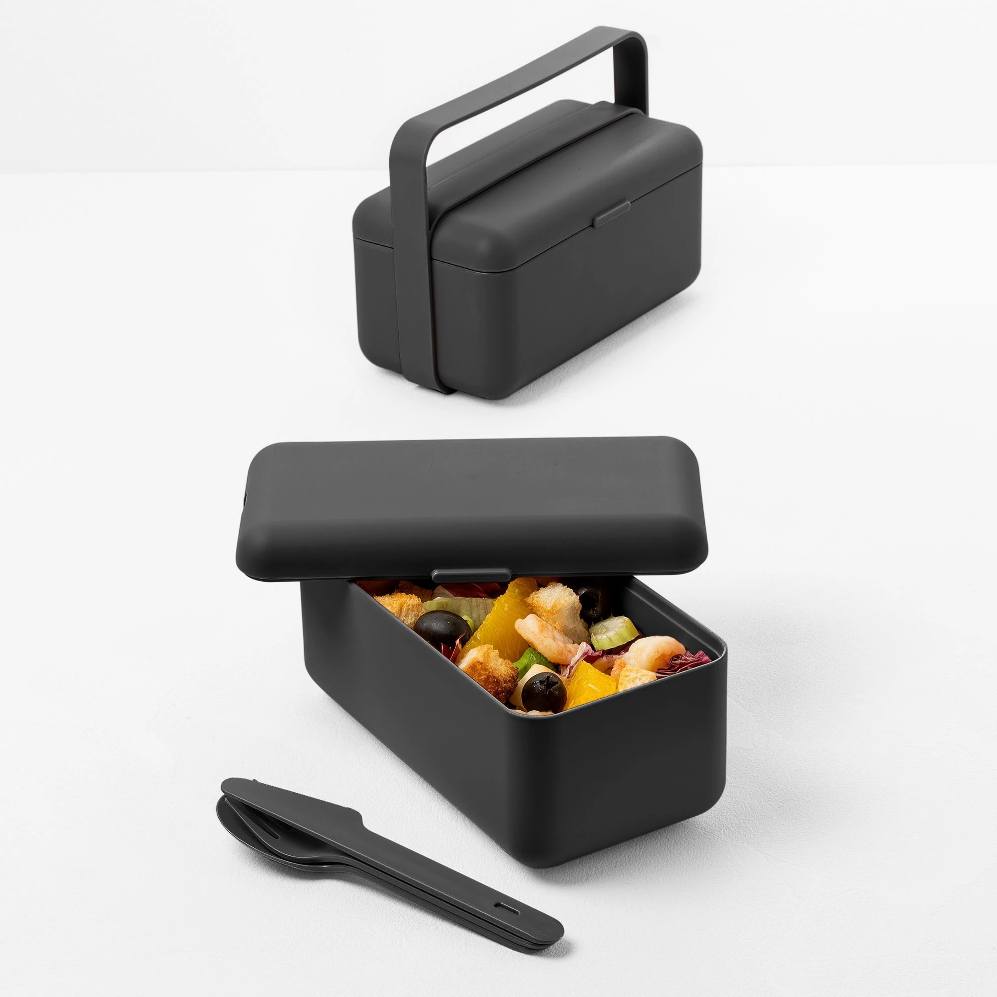 Die Lunchbox BAULETTO S von BlimPlus umfasst ein auslaufsicher verschlosenen Behälter mit Teiler, sowie ein kompakt zusammensteckbares Besteckse. Die Gestaltung der Lunchbox ist auf zeitgemäße Bedürfnisse ausgelegt, daher kann in der gummierten Innenseite des Deckels ein Smartphon rutschfest abgelgt werden. Die Farbgebung, unsichtbarenVerschlusskappen und das elastische Band mit Trageschlaufe gibt der Box ein modisches Aussehen.
