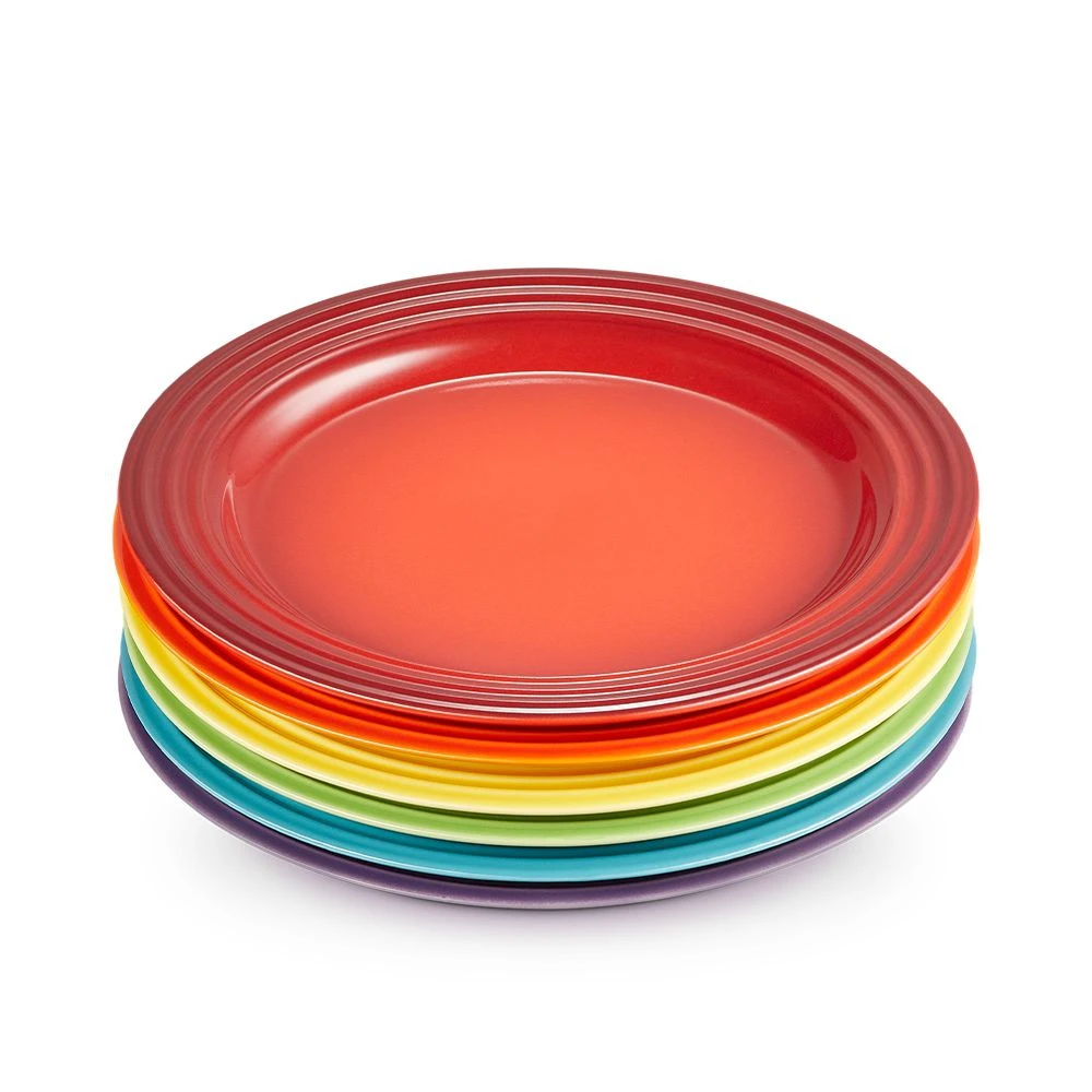 In der Farbe liegt die Kraft: Farben heben die Stimmung und setzen Ihre Lieblingsspeisen perfekt in Szene. Freuen Sie sich über die intensive Farbpalette dieser Kollektion aus sechs Frühstückstellern, handgefertigt aus Steinzeug. Dank der leichten Vertiefung eignen sich die Teller auch für Speisen mit köstlichen Soßen oder Marinaden. Die drei Ringe am Tellerrand repräsentieren das einzigartige Design von Le Creuset.