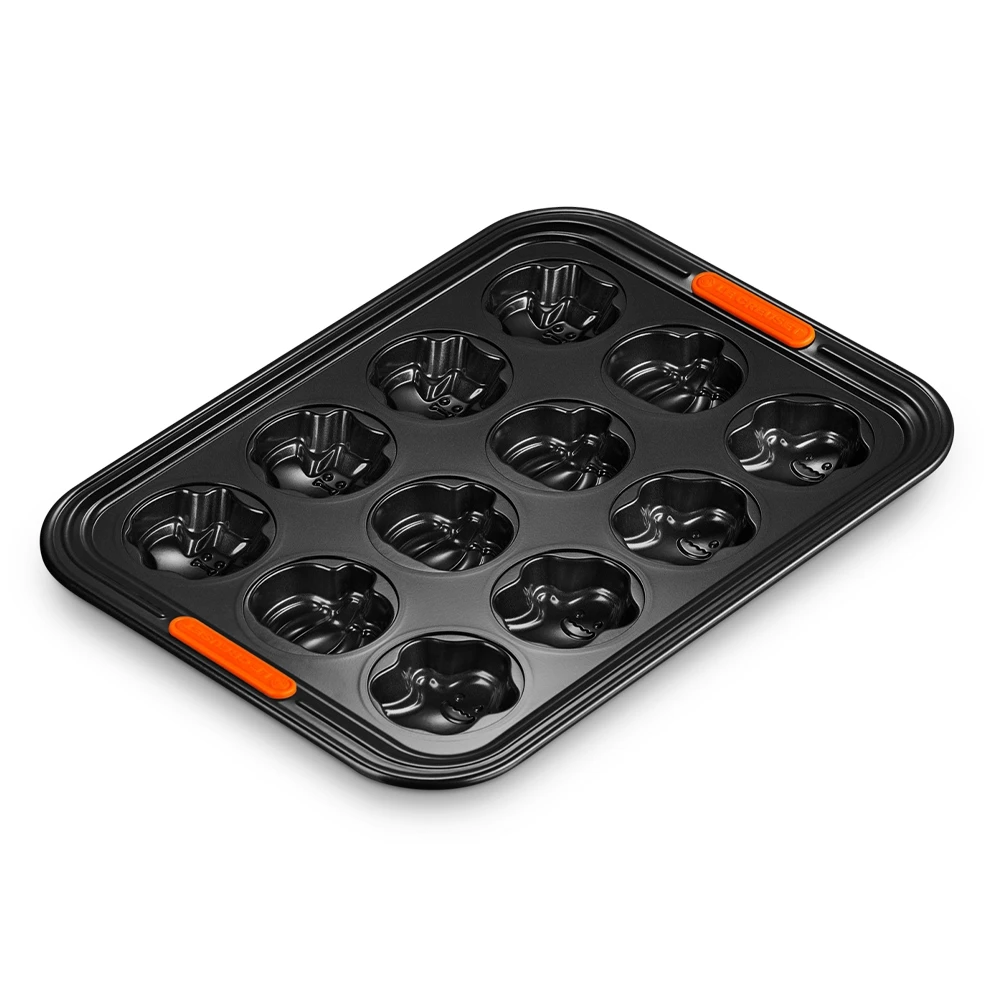 Zaubern Sie schaurig-schöne Leckerbissen mit dieser 12er-Halloweenform. Die einzelnen Backvertiefungen haben die Gestalt eines KĂŒrbisses, eines Gespenstes und einer Fledermaus – perfekt zum Backen von gruseligem Halloween-GebĂ€ck fĂŒr Familie und Freunde. Das Backblech ist fĂŒr Temperaturen bis 240 °C geeignet. Es ist auĂerdem mit der robusten Antihaftbeschichtung von Le Creuset versehen, die dafĂŒr sorgt, dass sich GebĂ€ck leicht aus der Form lösen lĂ€sst.