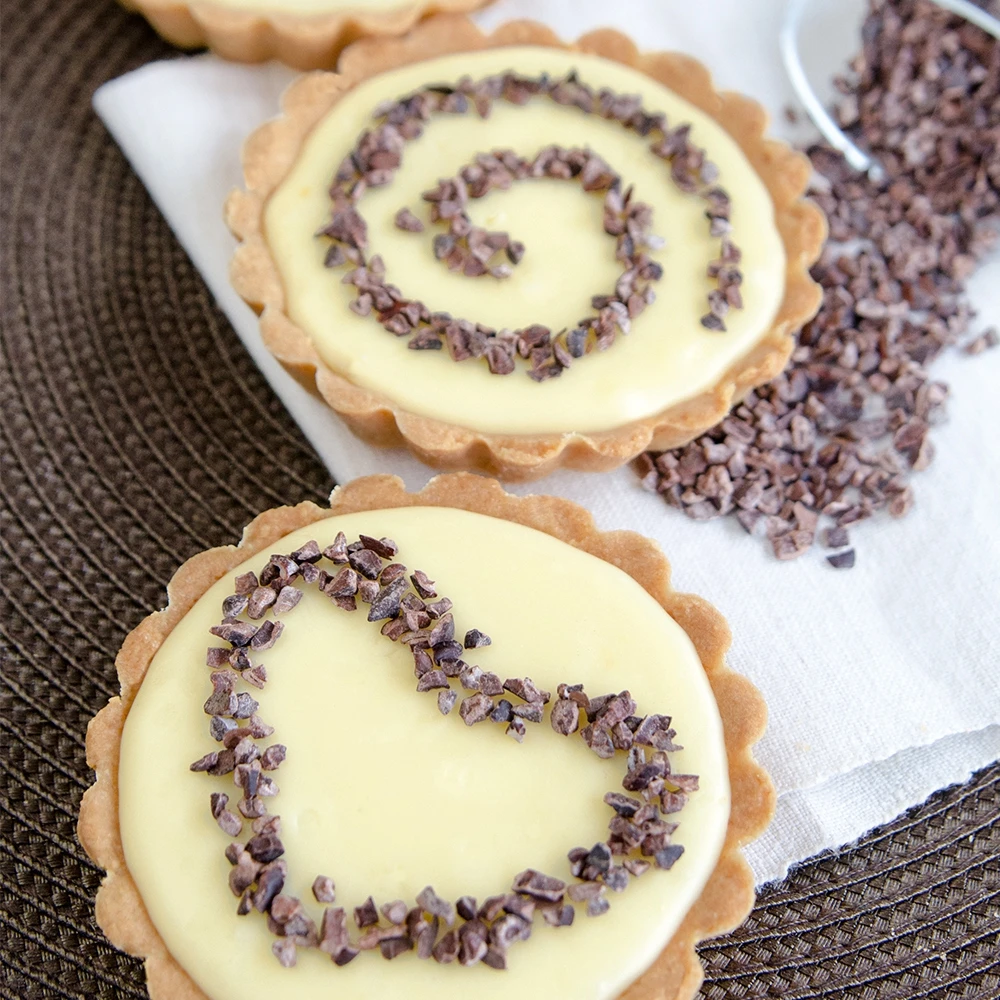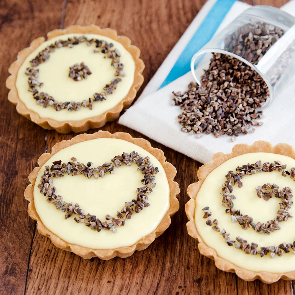 Zur Pralinenherstellung: Pralinen-Kugeln in Nibs rollen oder Nibs in die Füllung geben. Für einen besonders feinen, chrunchigen Geschmack: Nibs in die Buttercreme oder Sahnefüllung geben.