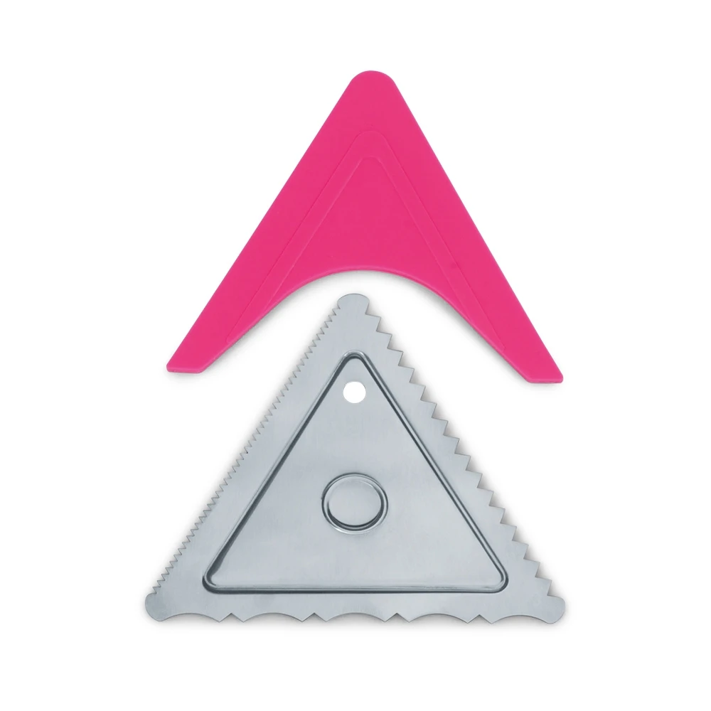 Jetzt sind exakte Garnierungen von Tortenrändern und Kuchenoberflächen ein Kinderspiel. Bei diesem Dekorschaber können Sie zwischen drei verschiedenen Mustern wählen. Besonders zum Verzieren von Creme- oder Sahnetorten geeignet. Das beste Ergebnis erhalten Sie, wenn Sie den Dekorschaber im 45°-Winkel ansetzen. Zur sicheren Anwendung stecken Sie den Silikonschutz über die beiden Seiten, mit denen Sie nicht arbeiten möchten. So liegt der Dekorschaber gut in der Hand. Achtung, scharfe Kanten! Darf nicht in Kinderhände gelangen!