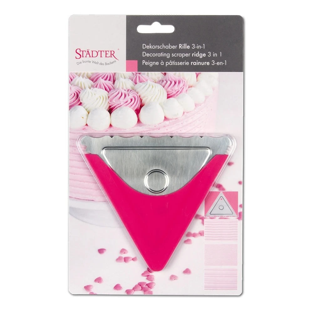 Wenn Sie Creme- und Sahnetorten mit Rillen garnieren wollen, dann ist der Dekorschaber von Städter genau richtig.