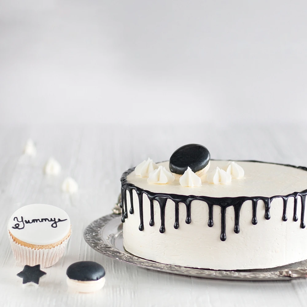 Hier heisst es nicht umsonst: Black is beautiful. Diamond Glaze von Städter verbreitet puren Glamour und macht aus jeder Leckerei ein Glanzstück. Feine Girlanden und Zeichnungen erhalten zauberhaften Schimmer, Glasuren partytauglichen Flitter.