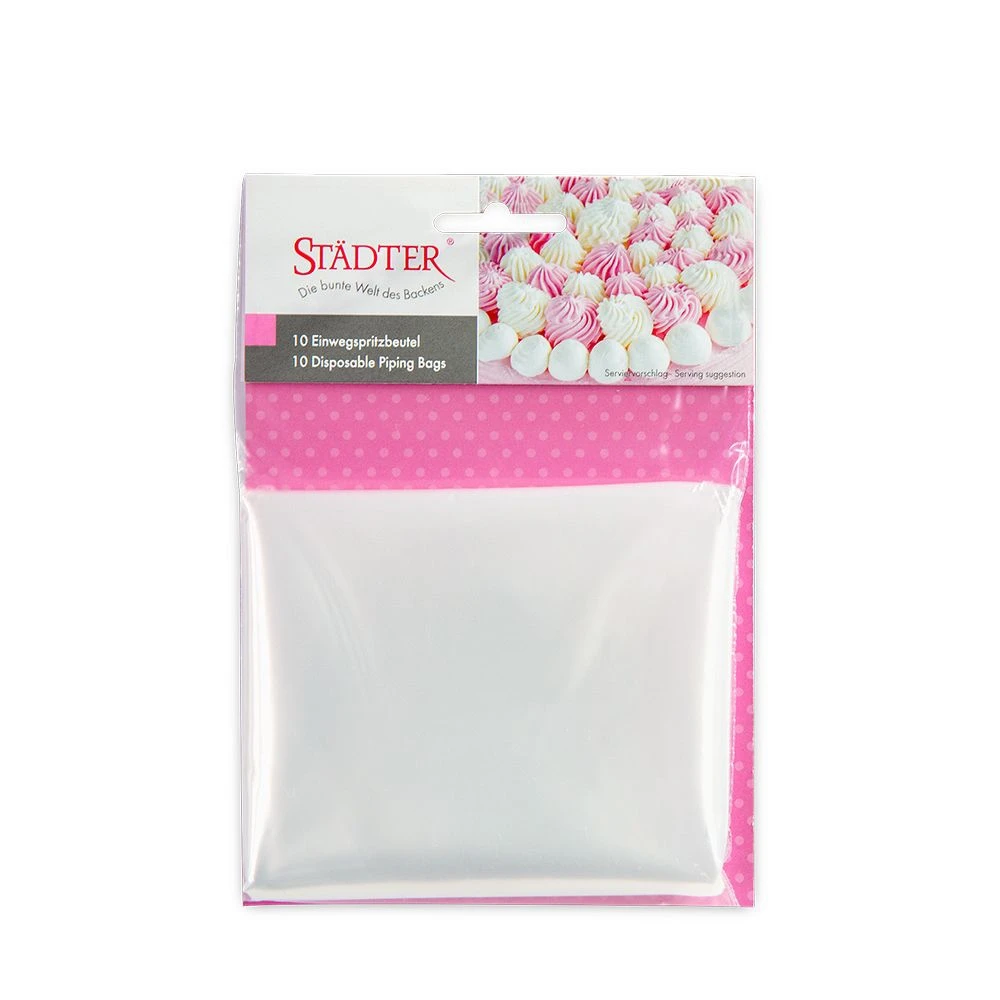 Dieser Einwegspritzbeutel von Städter ist perfekt zum Verarbeiten von Sahne, Icing oder Creme. Natürlich kann auch hier einer unserer Adapter benutzt werden um bei gefülltem Spritzbeutel zwischen verschiedenen Tülle zu wechseln.