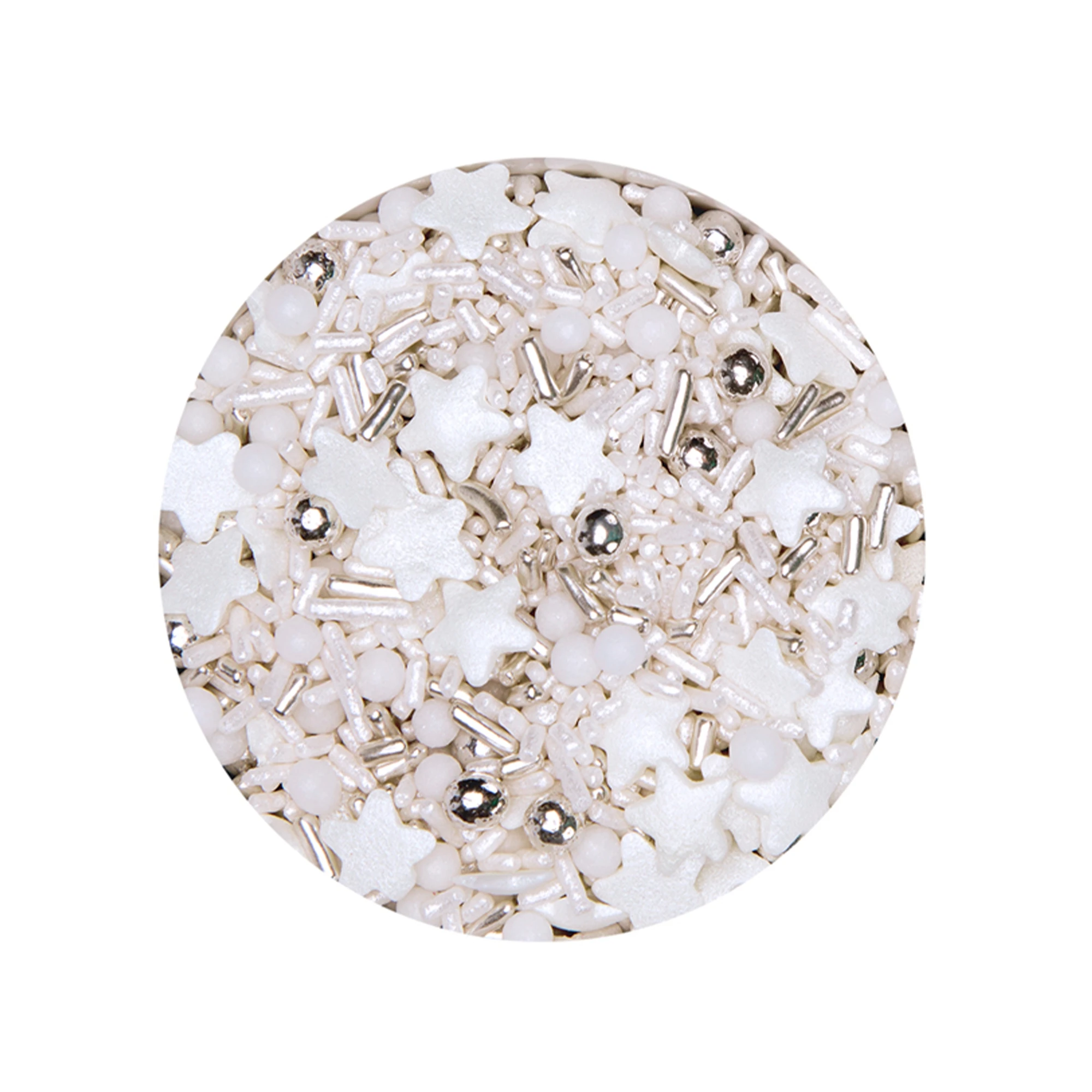Städter – Streudekor Sternenzauber Weiß Mix – Strahlend weiße Sterne mit Perlen und Streusel in Silber und Weiß.