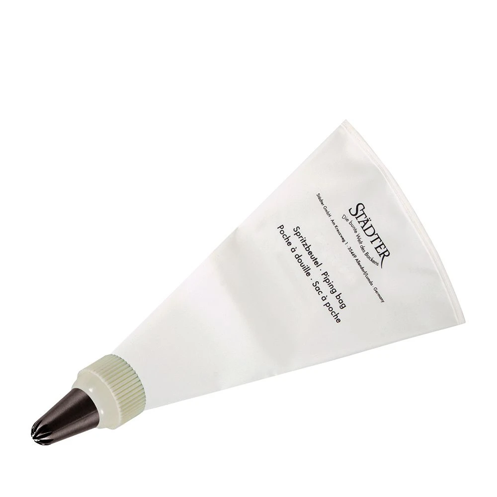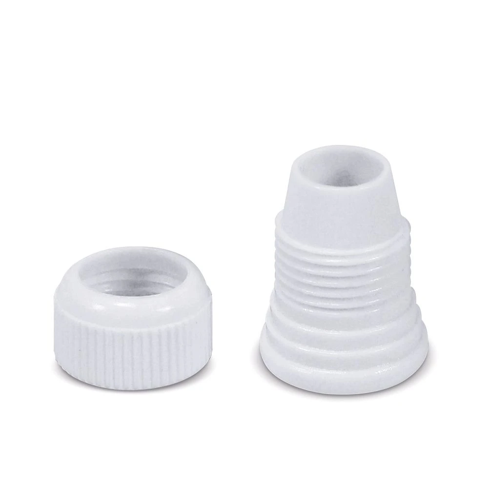 Durch unsere praktischen Adapter können Sie bei gefülltem Spritzbeutel die Tülle wechseln und sofort mit der anderen Tülle weiterdekorieren. Das Ansatz-Innenstück in den Spritzbeutel einsetzen. Die Tülle auf das Innenstück aufsetzen und mit der Verschlussschraube fixieren. Die Tülle sitzt absolut dicht. Nun kann der Spritzbeutel gefüllt werden.